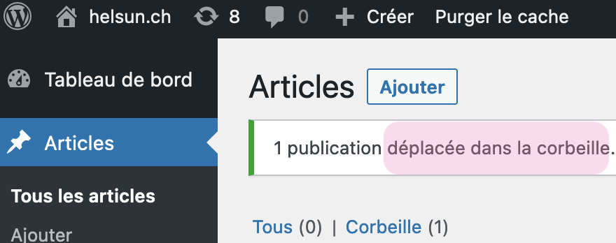 8. Articles/ mettre à la corbeille et vider la corbeille