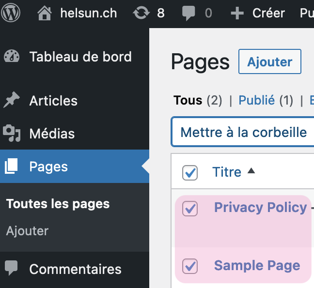 7. Pages/ mettre à la corbeille et vider la corbeille