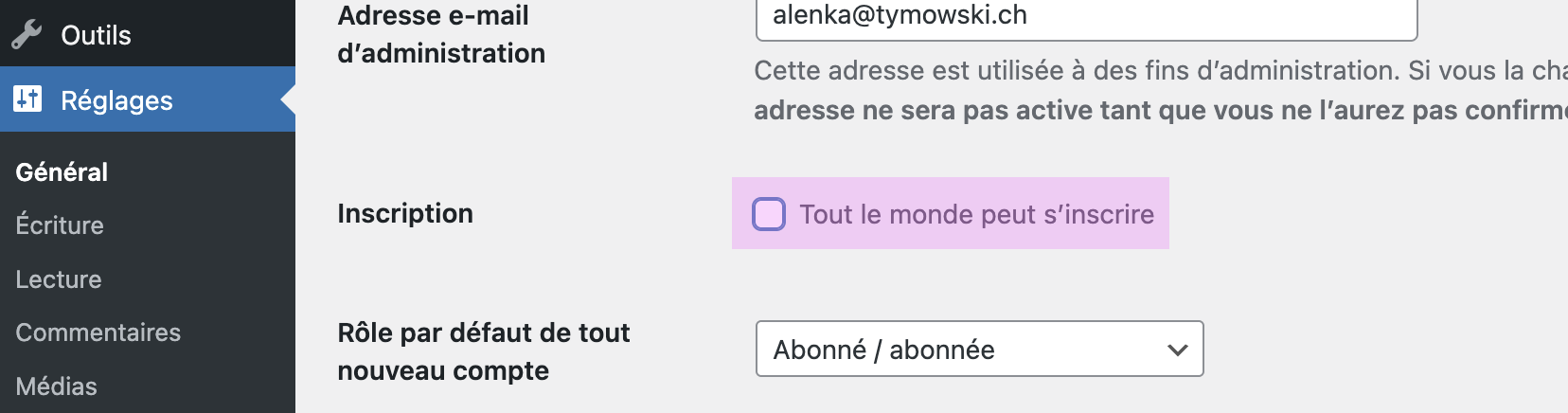 3. Réglages/ Général/ Décocher: Tout le monde peut s’inscrire
