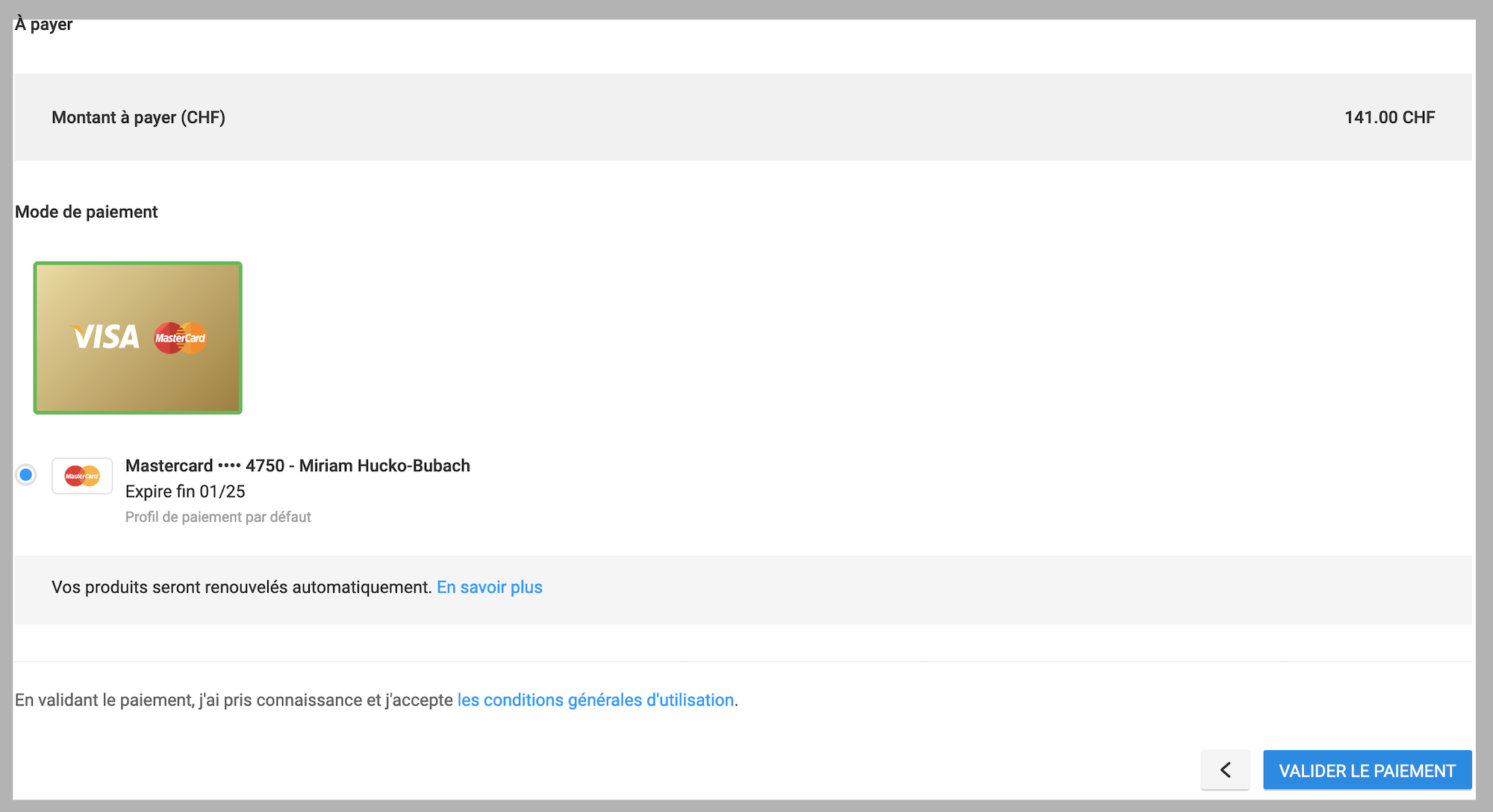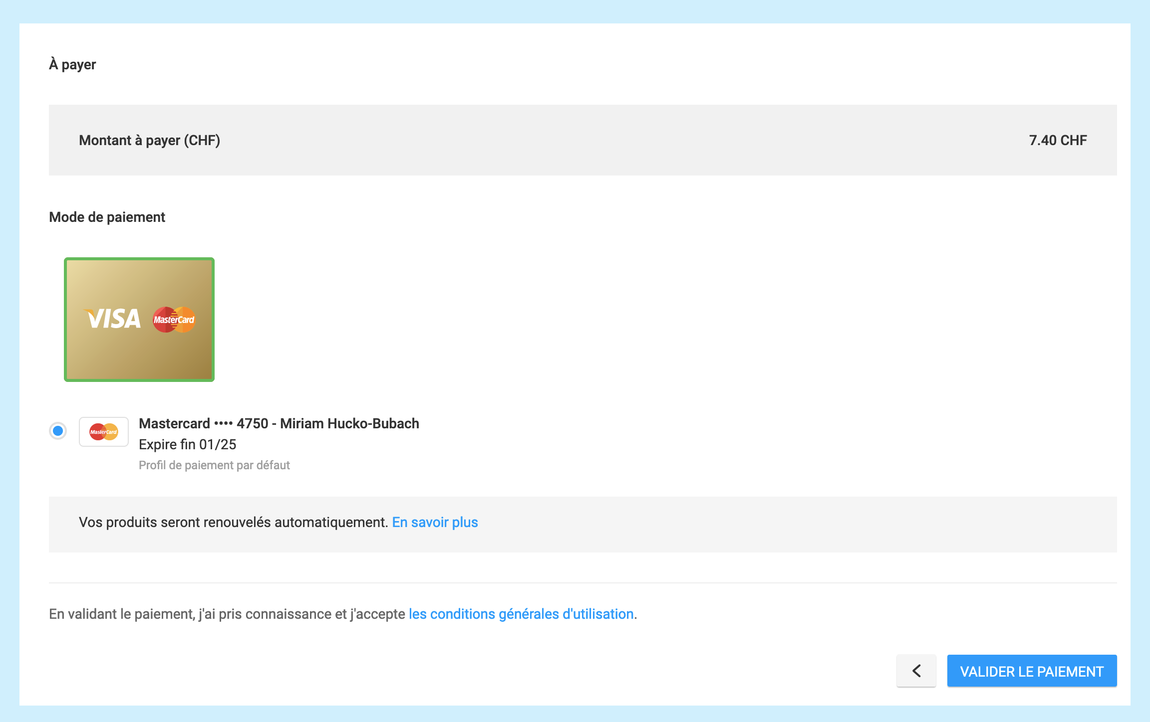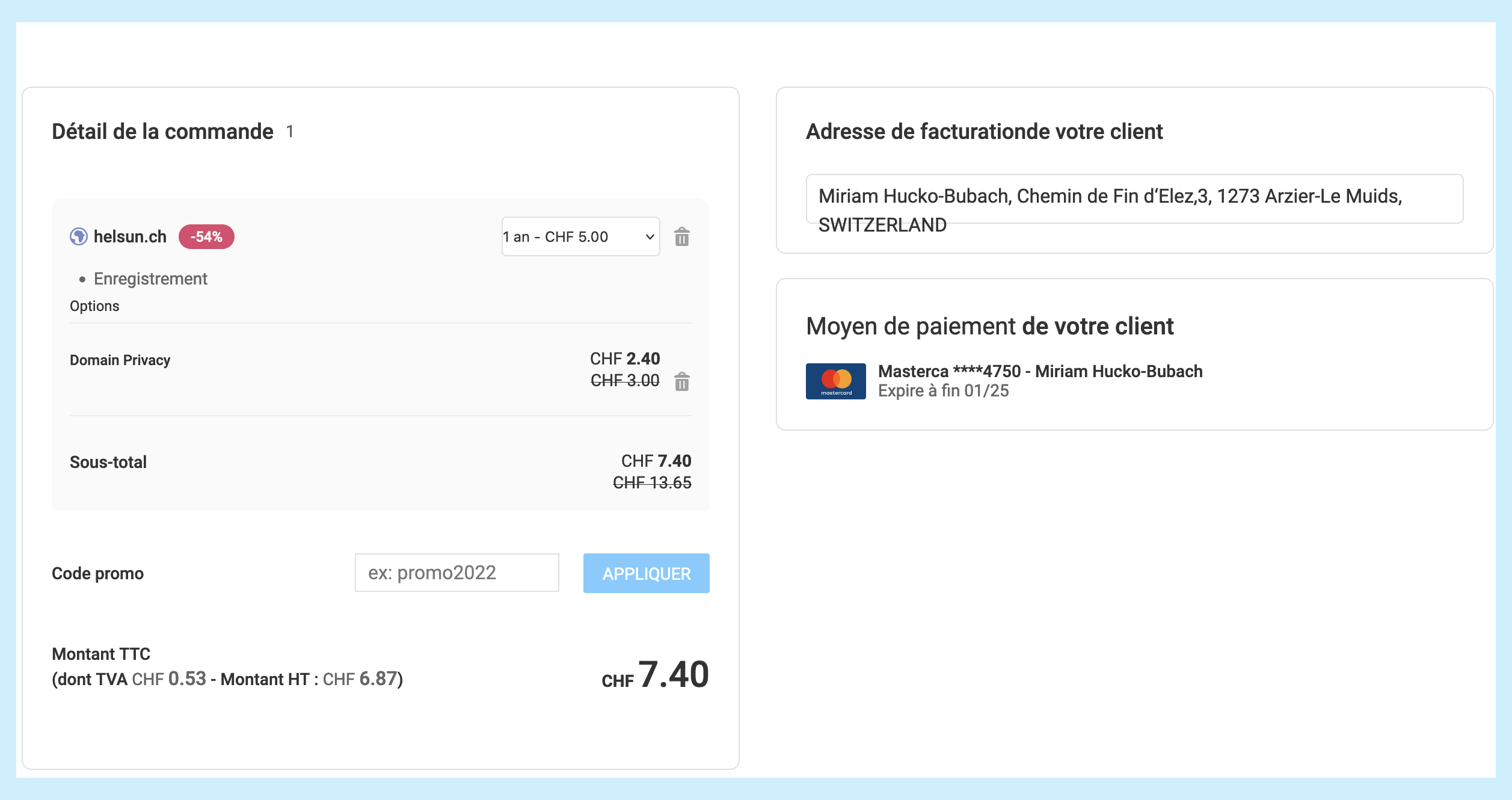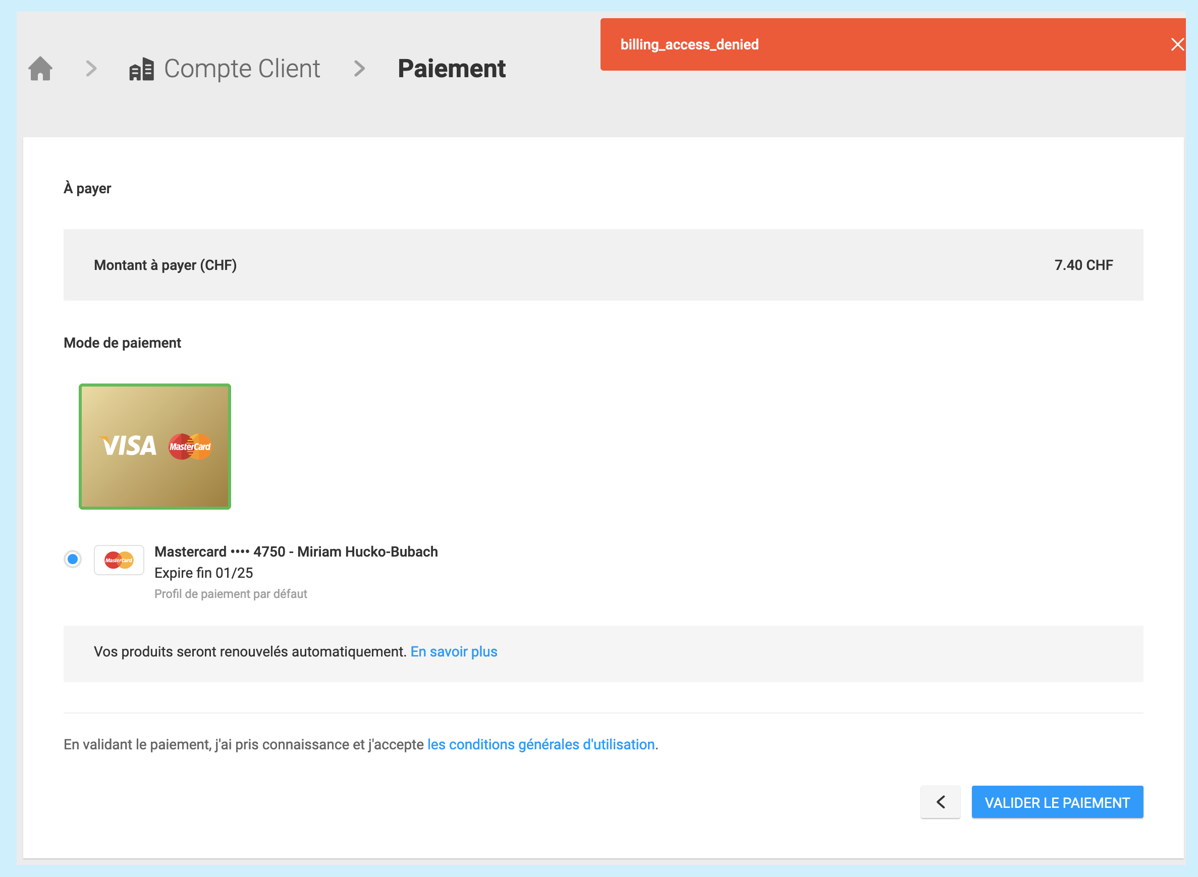 2/ Enregistrement d’un moyen de paiement par le client