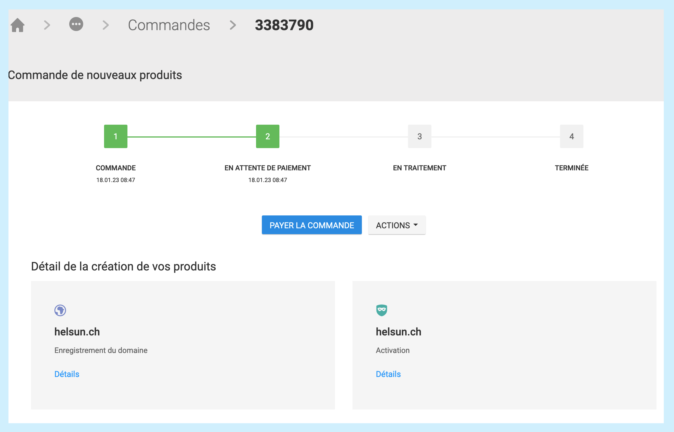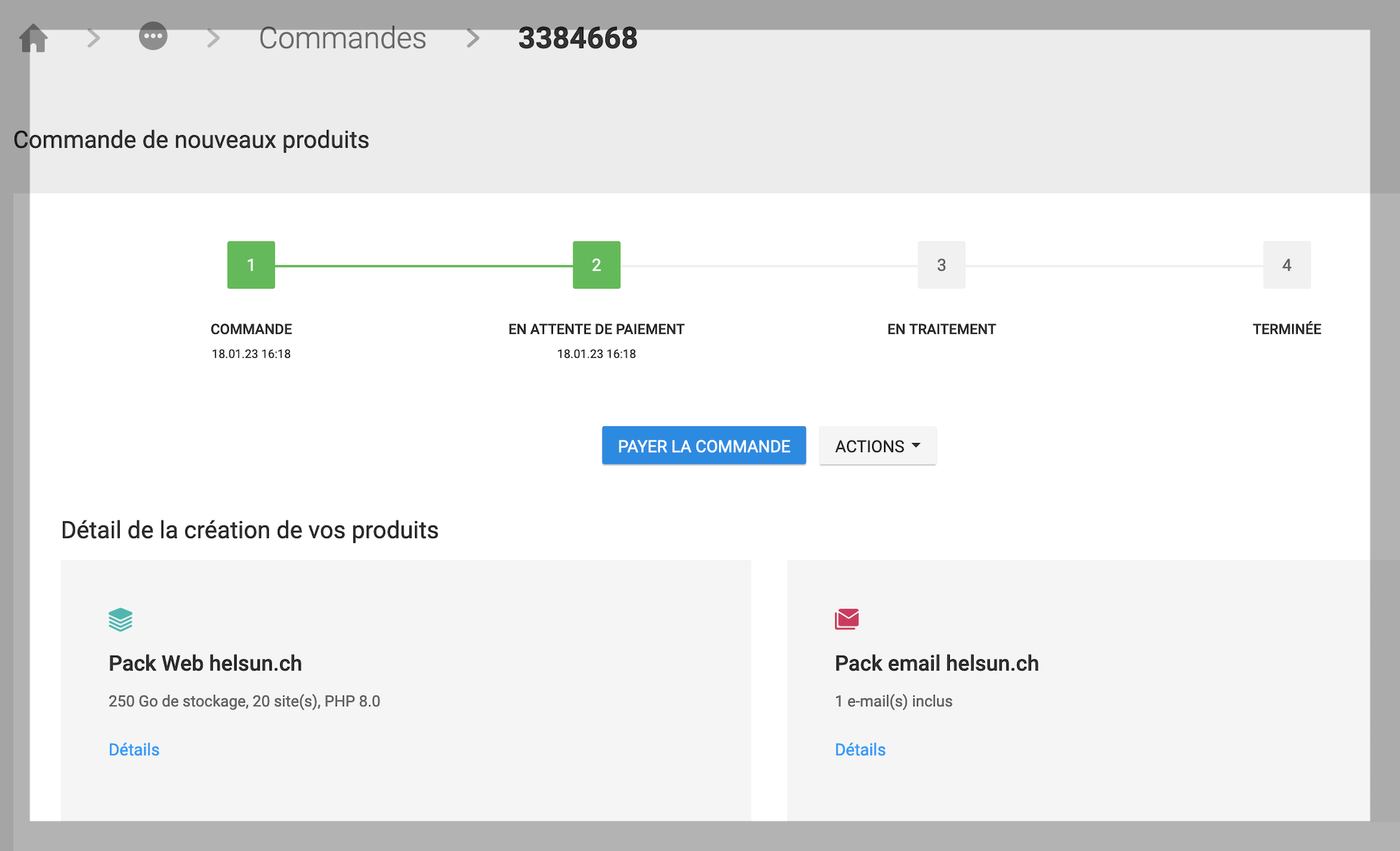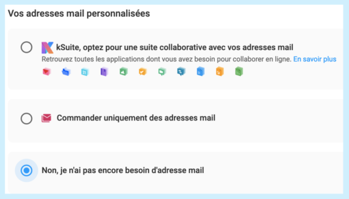 Depuis la console, le client peut ajouter un partenaire (AL&JE) de manière à ce qu’il puisse réserver un NDD, créer des adresses emails, installer WordPress (pour faire votre site web) et commencer à construire le site web.