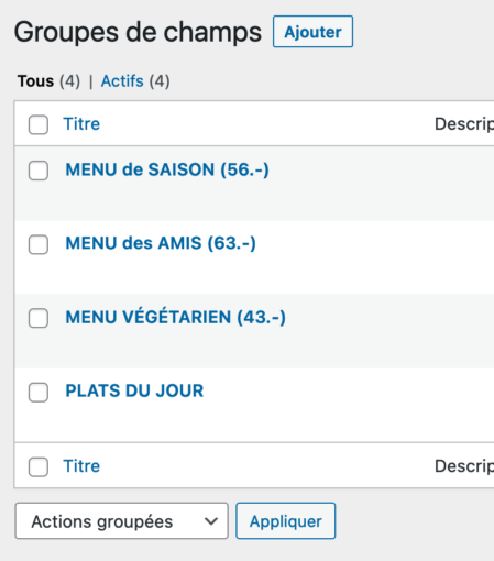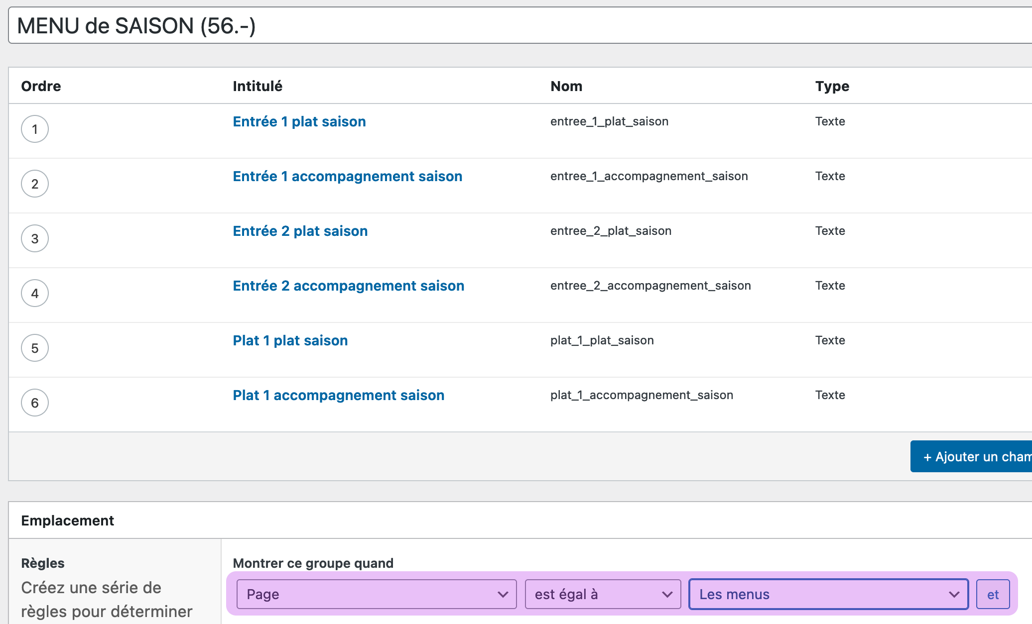 Dire ou on veut que la liste ACF apparaisse (dans quelle page)