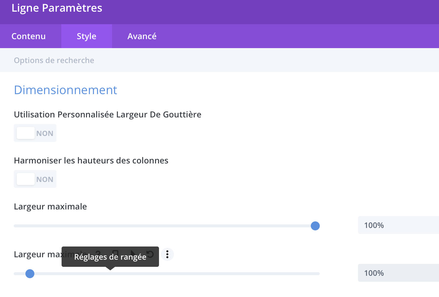 – Dans style/ dimensionnement/ mettre à 100% les largeur maximales
