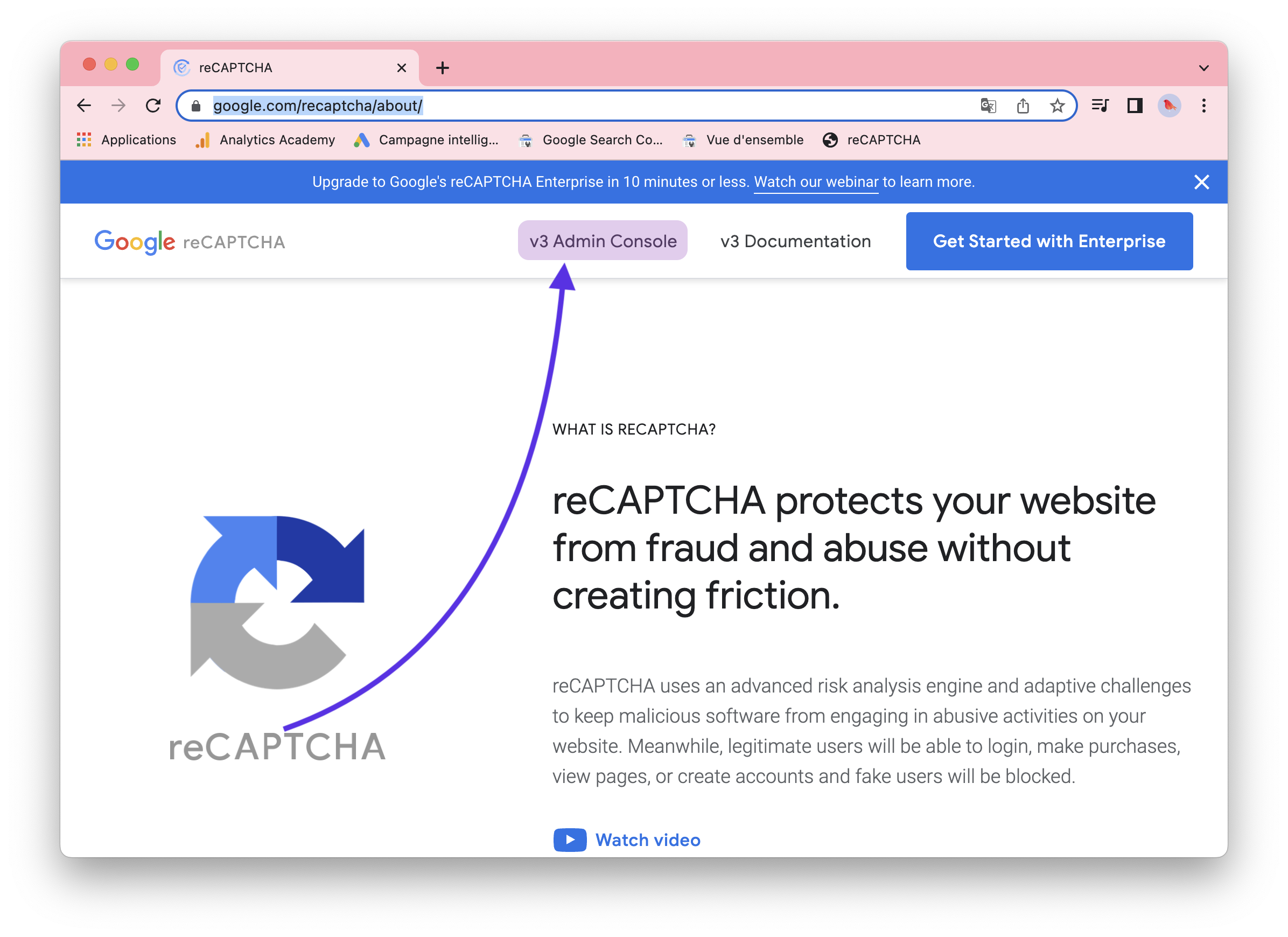 – Dans navigateur taper Google recaptcha V3 https://www.google.com/recaptcha/about/