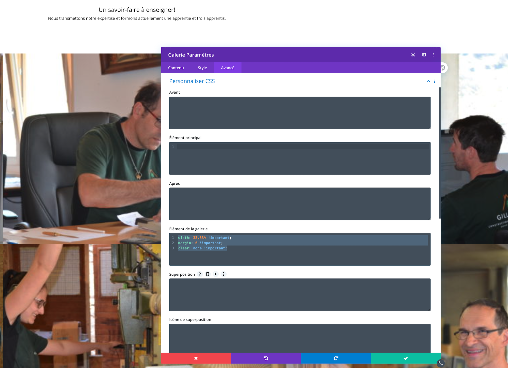 4. Galerie photo, choix nombre de colonnes